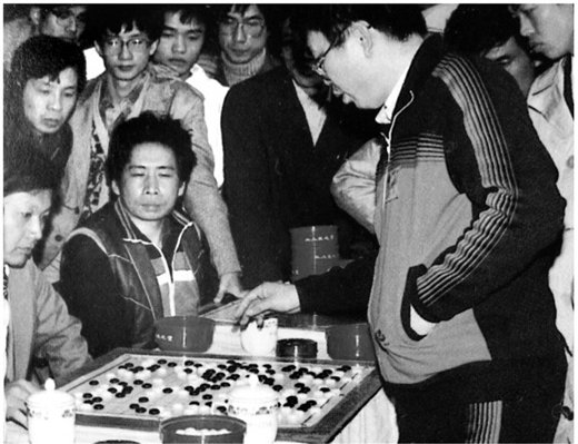 - 中日围棋擂台赛期间,聂卫平(右)在南宁市工人文化宫下“指导棋”。陆锦彪/摄