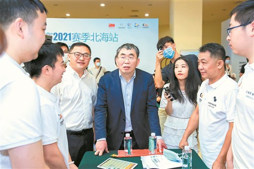 - 2021年5月29日,2021赛季城围联在北海开幕,聂卫平现身赛场为众棋手打气。城围联供图